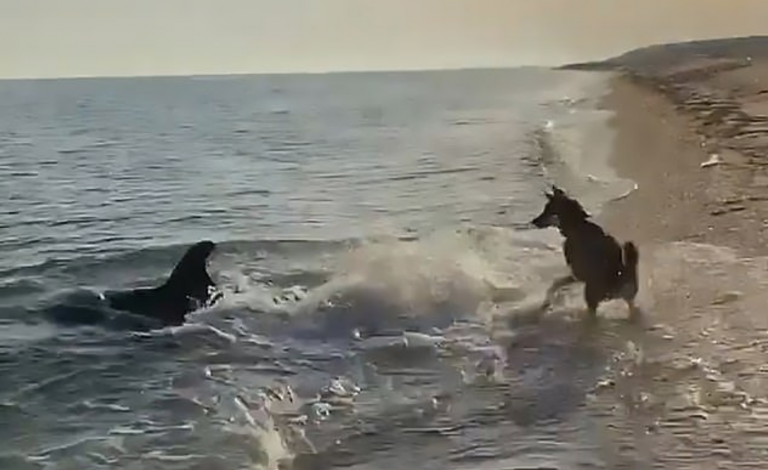 The video of the joyous game of chase of the dolphin and the curious dog in the shallows of the water enchanted people online, and it quickly became viral.