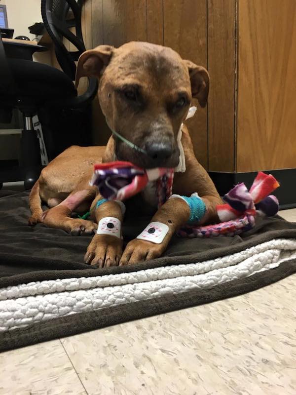 I hope Remi makes it! And a big “thumbs up” to the children who called 911 to rescue this poor dog!