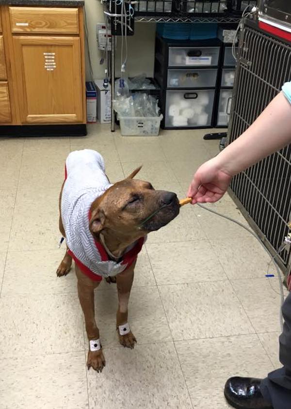 The Pit Bull is fighting a severe infection and is showing signs of getting better, but is not out of the woods yet.