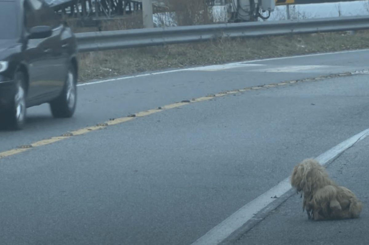 After a few bites and some water, they watch as Boksil crawls under the gate. Now they can get to her if she will let them. Boksil makes her way over to the road, carrying her heavy matted fur, and just sits there. It’s truly a heartbreaking thing to see. She watches as each car passes by hoping one of them will stop and her owner will come home.
