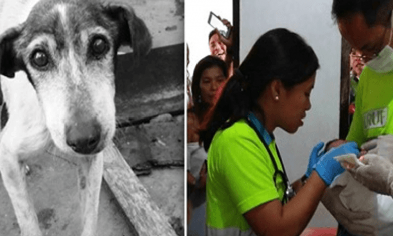 The dog was spotted by local Vilma Toring, who noticed the dog pulling at a white cloth from the pile of garbage under some stilt homes in the middle of the afternoon.