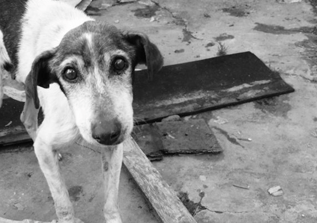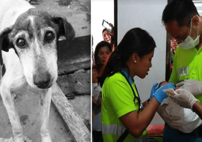 The dog was spotted by local Vilma Toring, who noticed the dog pulling at a white cloth from the pile of garbage under some stilt homes in the middle of the afternoon.
