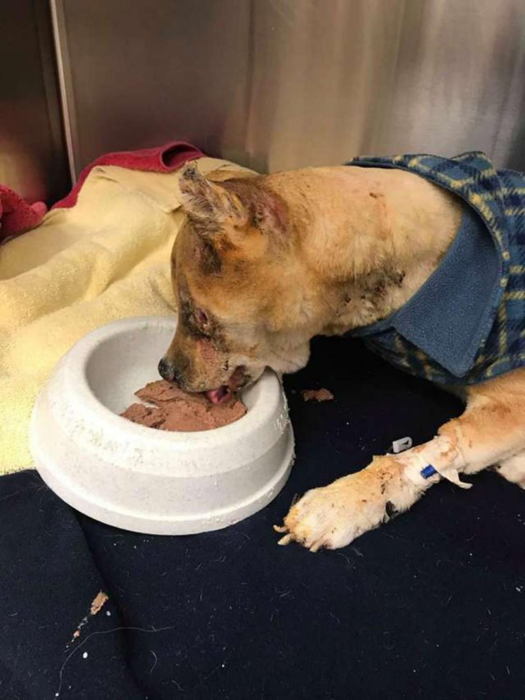 “He had burns around his eyes, mouth, ears, belly,” said Emily Martin, vet at Care More Animal Hospital. “We really didn’t know how bad his injuries were initially because we had to worry about inhalation burns.”
