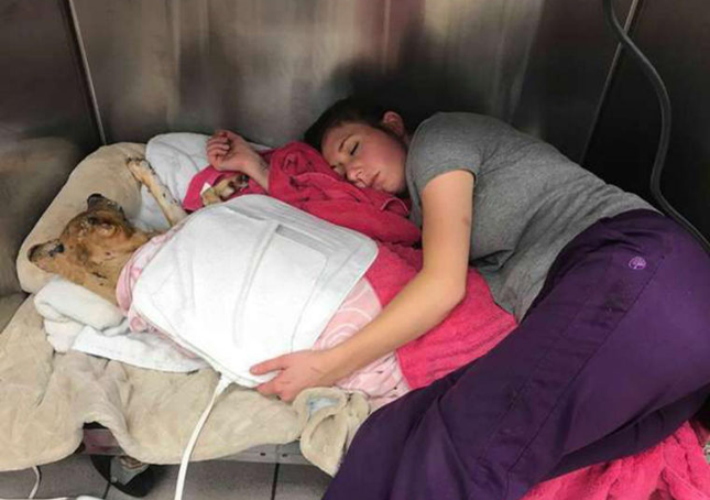 As the hospital is not open 24 hours a day, Martin took Taka home at night. So he didn’t have to sleep alone. The next day, Martin crawled into Taka’s kennel at the veterinary hospital, and they slept together.