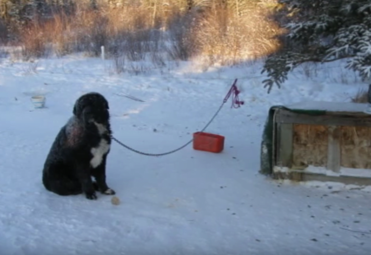 Diesel, a poor dog, spent more than 4 years alone in minus 40-degree in Yukon Canada. He was chained up, with a very frozen ground, and he always tries to hold one paw off the frozen ground. He was totally isolated without any human he was kicked in his mouth by a horse, and he was also attacked by some loose dogs.