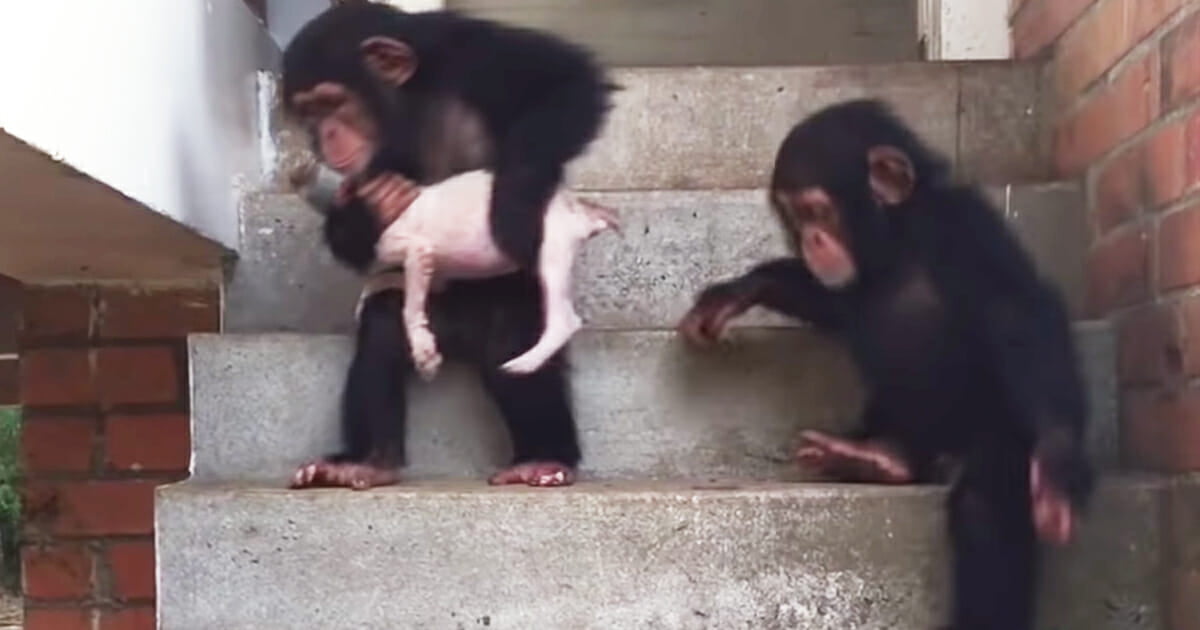 She’s now in a loving home with two sisters and a mom and dad that love her dearly and it’s all thanks to a sanctuary that cares and some loving chimpanzees.