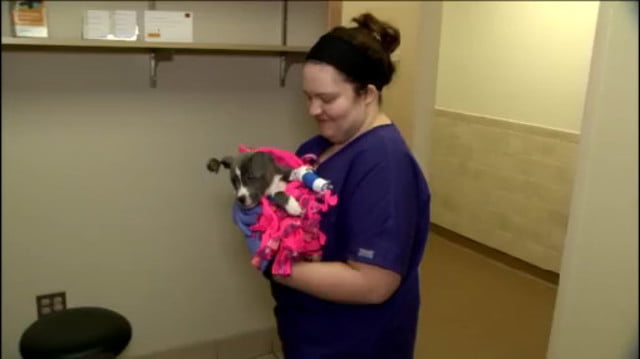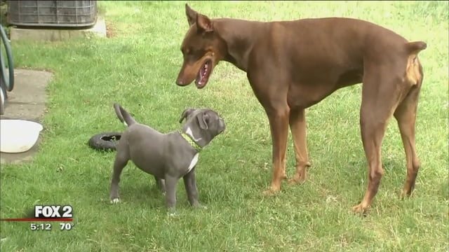 Chandler, who is now three months old, is being adopted by a couple in Hazel Park. Both of them volunteer with Detroit Dog Rescue and were a great fit for the pup. Chandler will even have a new big doggy sister to play with!