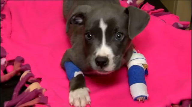 A baby blue pit bull was found in a Detroit park after someone tried to do neuter him on their own. When the neuter job went wrong, they left the poor pup for dead.