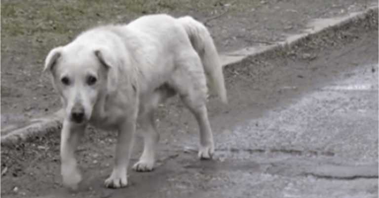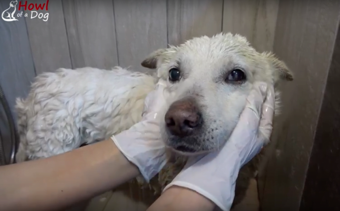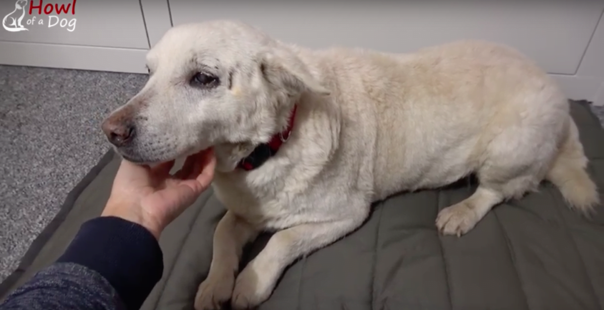A homeless senior dog was spotted roaming outside near a train station. He was cold, scared and depressed, and Howl Of A Dog knew they had to save him.