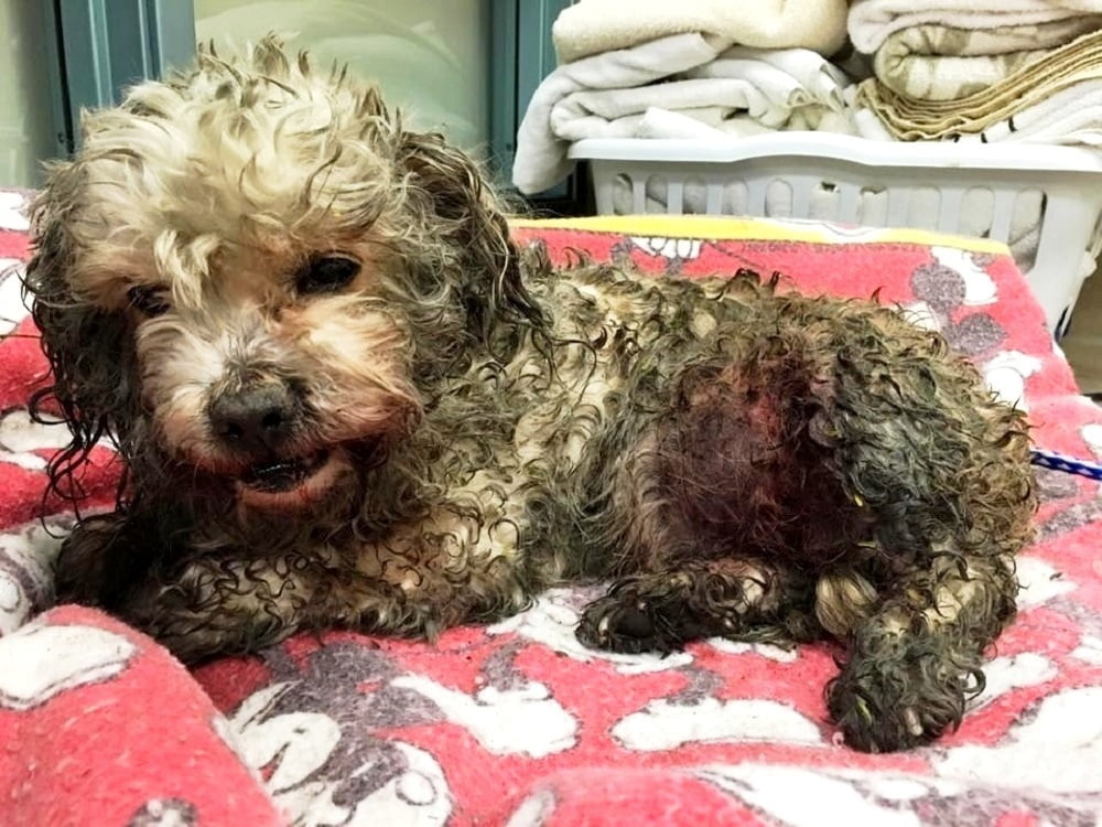 The dying pooch had no pulse in his lower body when he was rushed to the vet at the local shelter. The vet added heating pads to the rain-soaked baby as she examined his wounds. It was determined that Mr. Snuggles had traumatic abdominal hernia, an avulsed tooth and several other contusions. He was in extreme pain and it only seemed merciful to put him down.
