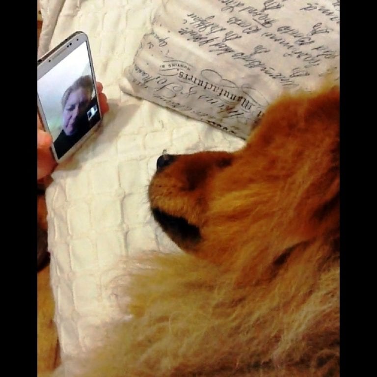 In this video, we see the dog’s heartbreaking reaction during her emotional video call with Mom. The dog lifelessly lies on the couch as she watches Mom on the phone, and is soon overcome with sadness. Her eyes tear up and she lets out haunting moans as she tries to tell Mom that she misses her too much!