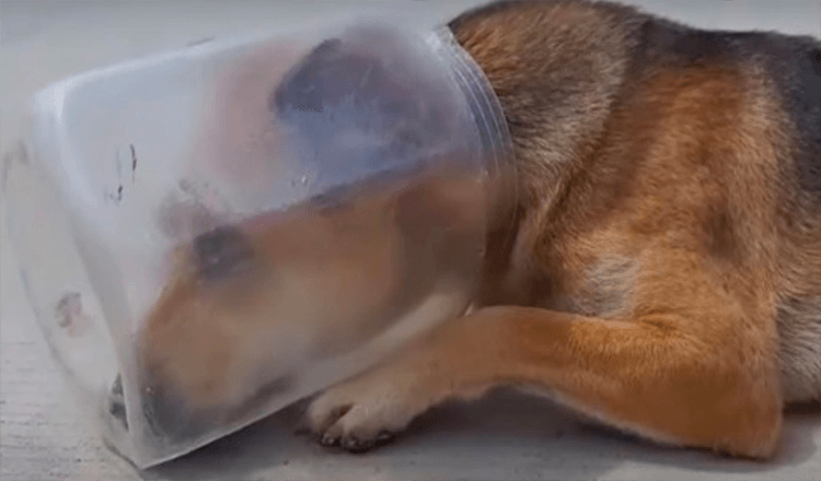 A rescue group received a call about an injured stray wandering around a nearby area. This wasn’t the typical call. The stray dog didn’t just need to be rescued to get off the streets. He needed to be rescued or he wouldn’t survive. The stray had a jar stuck on his head, making eating and drinking an impossibility. The poor dog could hardly breathe!