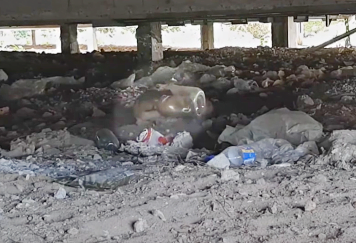 Rescuers tried to capture the pup but he continued to run until he hid beneath a bridge, and laid down out of breath. The animal rescuers felt they had no choice but to use a humane tranquilizer dart on the pup. After he was shot by the dart, he ran off again, but this time onto a busy street. Cars whizzed by, honking their horns. The rescuers ran after him. When the anesthesia kicked in, the tired dog laid down and waited for help.