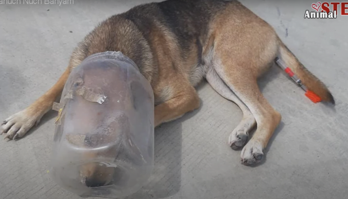 A rescue group received a call about an injured stray wandering around a nearby area. This wasn’t the typical call. The stray dog didn’t just need to be rescued to get off the streets. He needed to be rescued or he wouldn’t survive. The stray had a jar stuck on his head, making eating and drinking an impossibility. The poor dog could hardly breathe!