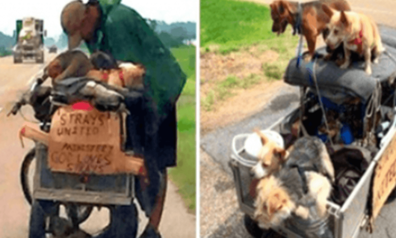 Woman Sees Homeless Man Pushing Cart Full Of Stray Dogs, Stops To Ask His Story
