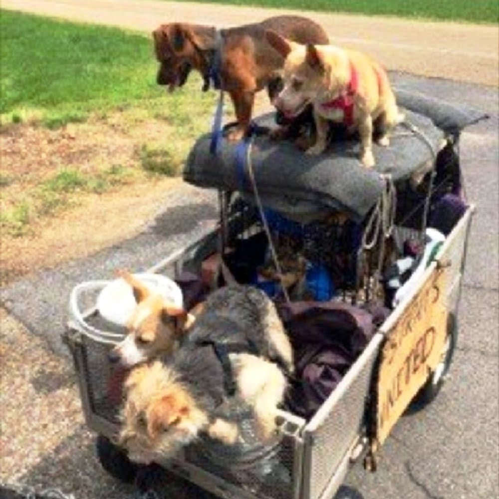 Roughly 15 years later, Steve decided to travel to Indiana to see a friend. At that time, he was caring for 11 homeless dogs. So he made a makeshift vehicle out of a bicycle and a shopping cart to carry his furry family along with him. However, he had no idea that fortune would finally smile on him during this special trip!