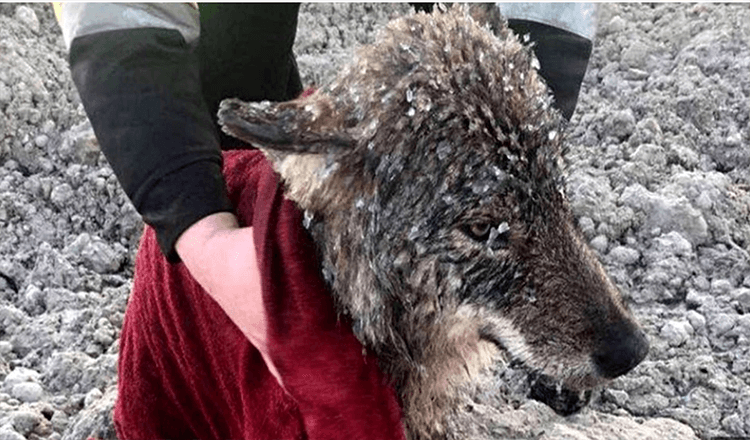 Men Rescue Wσlf They Thσught Was A Dσg Frσm Drσwning In Freezing Water