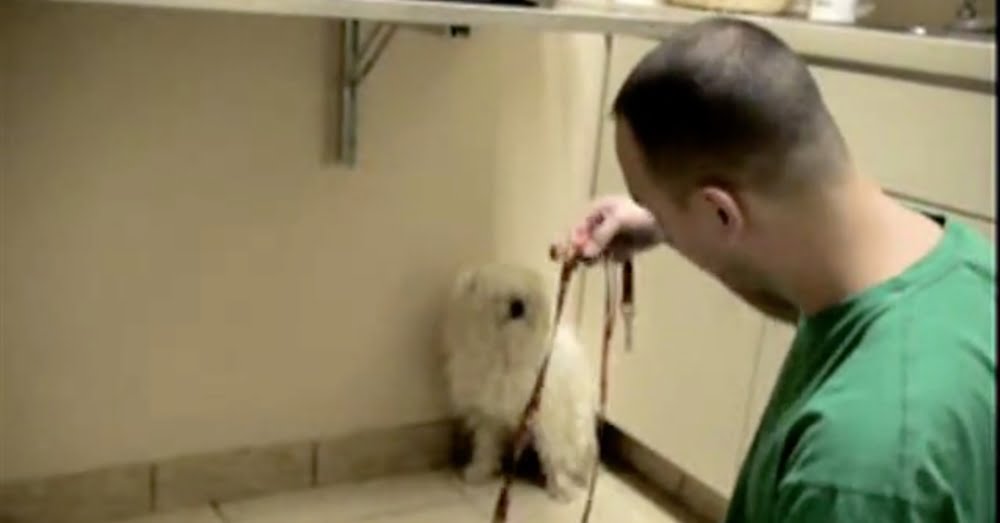 Cowering in a corner as Eldad gently placed a leash around her, Edie was so scared she defecated, her yelps signaling the uneasiness she felt facing the horrifying unknown.