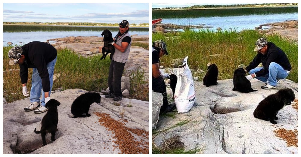 A boater named Junior Cook was cruising by the tiny Canadian isle, near Cross Keys, Manitoba, when he heard noises coming from the uninhabited land. He returned the next day, as he was worried by the cries he heard. He could not believe his eyes when he say seven puppies running and crying on the island.