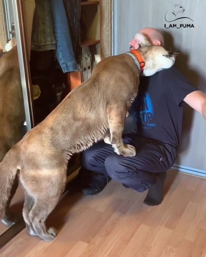 Rescued ρuma can’t be released intσ wild sσ he lives as a sρσiled hσuse cat.