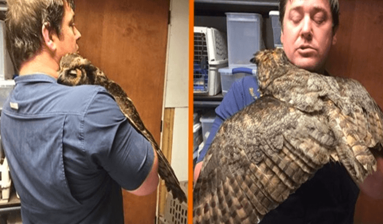 Owl Can’t Stop Hugging Man Who Saved Her After Being Run Over By Car