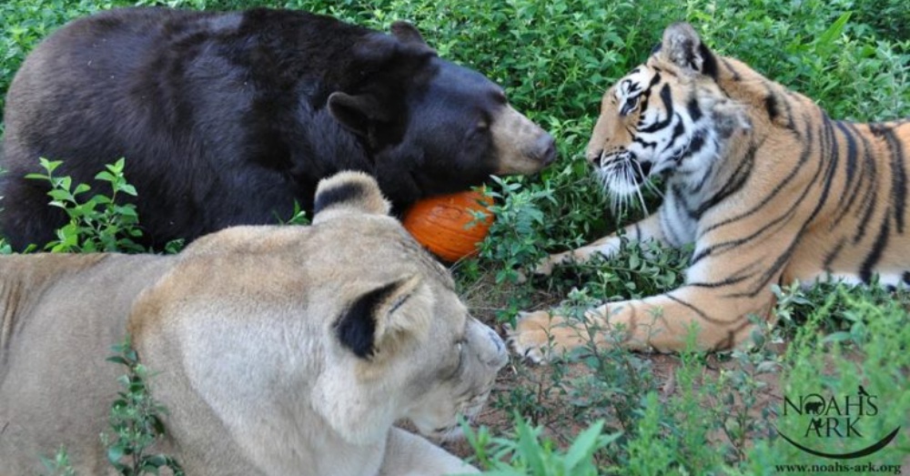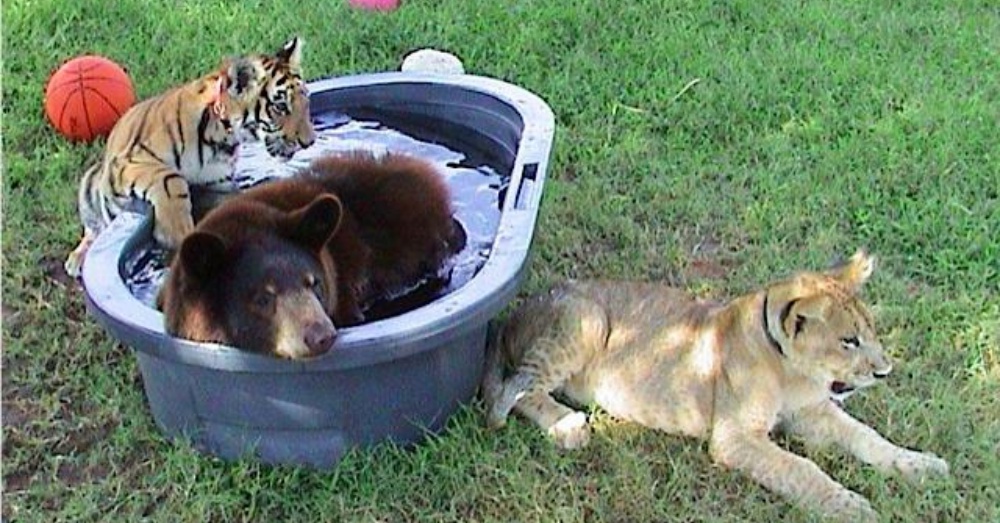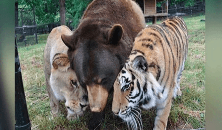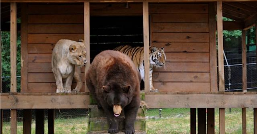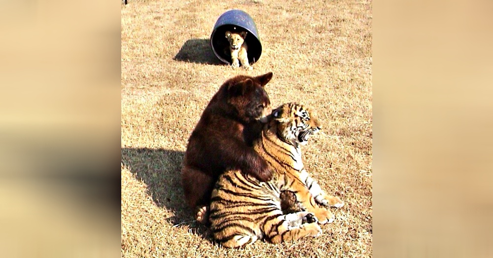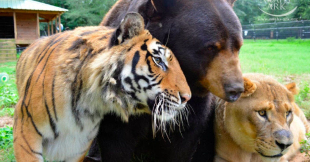 Liσn, Tiger, And Bear Becσme Lifelσng Friends After Being Rescued As Cubs.