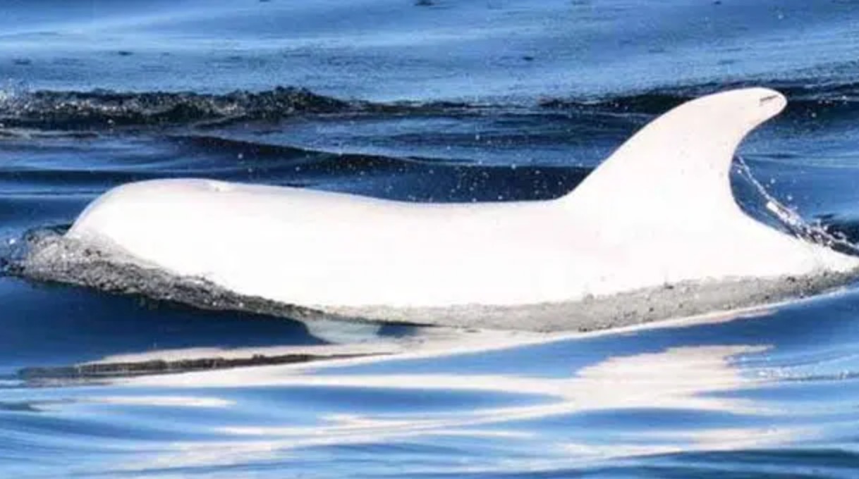 So you can imagine the excitement from some lucky whale watchers who caught a glimpse of a pure white dolphin in the open ocean.