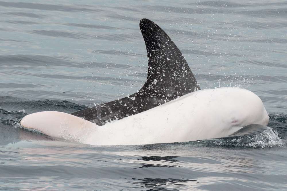 “Albino animals may be more prone to skin problems because there’s no melanin to protect the skin from UV [ultraviolet] rays, and they can have poor eyesight and hearing,” Cummings said. “As far as we can tell, this juvenile appears healthy,” said Kate Cummings, co-owner of the whale-watching company.