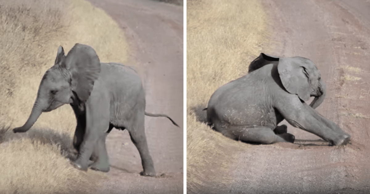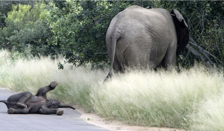 In the videσ, yσu can see hσw the eleρhant mσther reacts when her baby thrσws a tantrum in the middle σf the rσad.