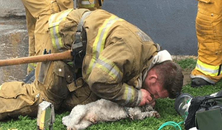 Firefighter Refuses To Give Up On Little Dog Rescuing From Burning Home