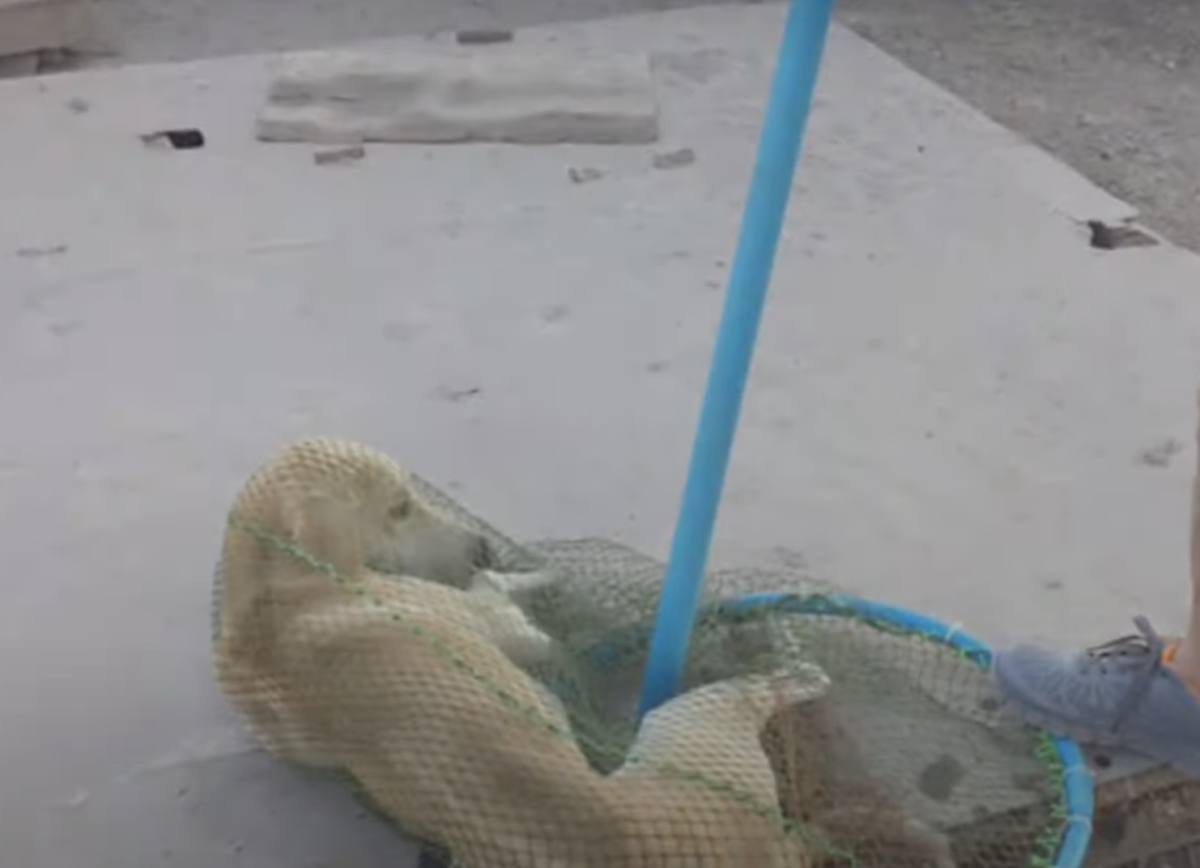 Finally, a rescue group stepped up. They followed the dog and tried to capture him for a long time. But they weren’t going to give up on him. After a few days, they got lucky by using a net. The poor dog desperately needed medical treatment and some TLC. Of course, he was scared but he’d eventually understand that this rescue was for his own good.