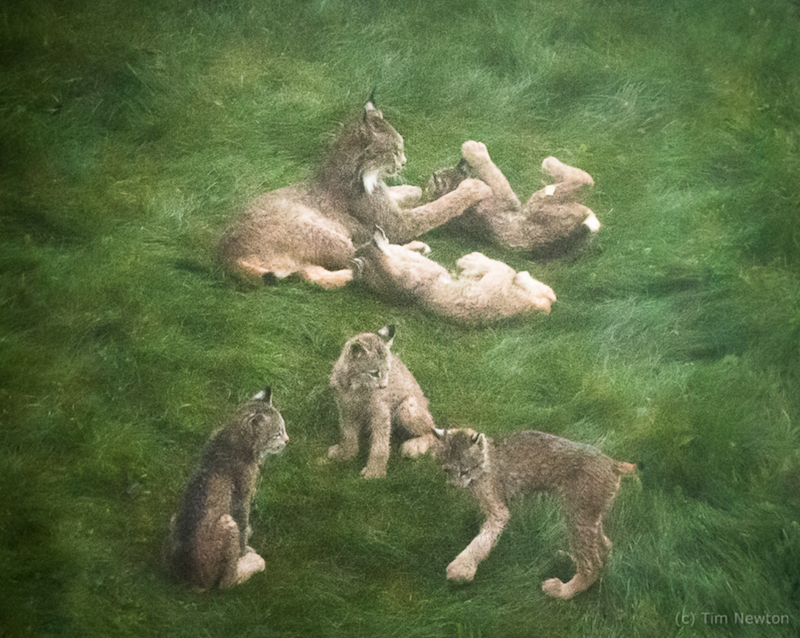 He said that the little lynx family hung around for about forty minutes. During which time they were wrestling, running, and rolling around.