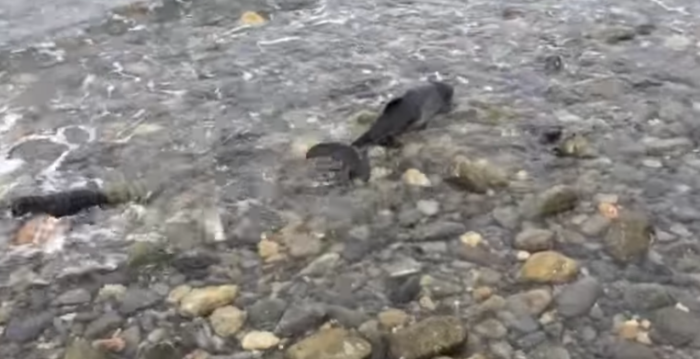 Thank goodness the dog discovered the little water mammal. The man was able to scoop him up and place him gently back into the water. He also captured video footage so you can see the awesome rescue for yourself.