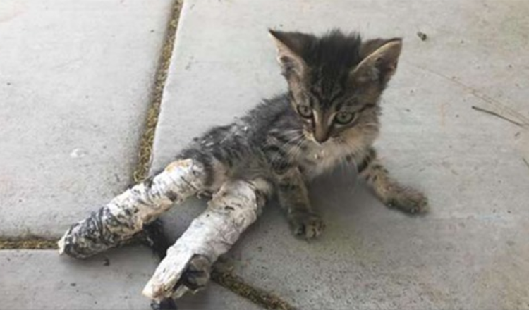 The kitten weighed only a pound then the casts were removed, and still needs to gain some weight before she can leave the shelter. Thankfully, Cupcake already has a foster family waiting to help her along as she recovers.