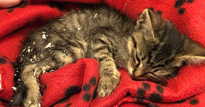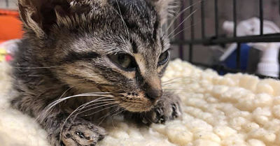 The veterinarian removed Cupcake’s cast and the worst was expected, after all, they were only covered in wooden splints and pieces of fabric. One of the casts was wrapped so tightly around the kitten’s tiny leg it had to soak a little longer.