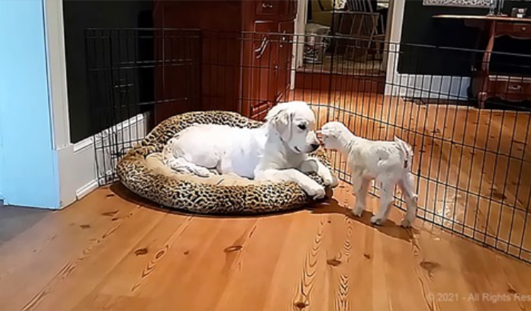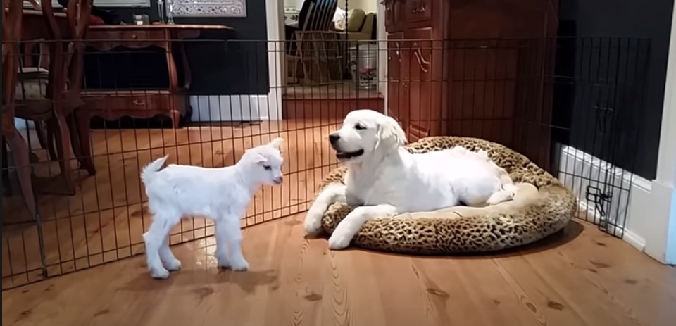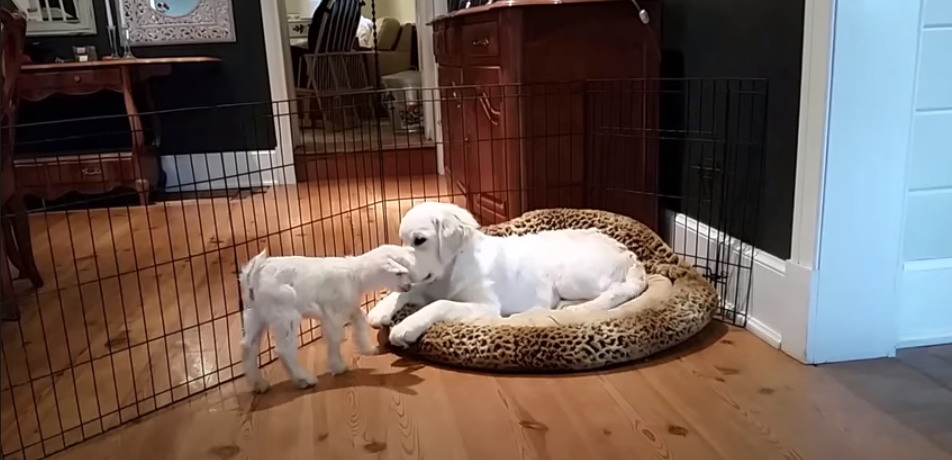 Adorable Goat Meets His First Puppy