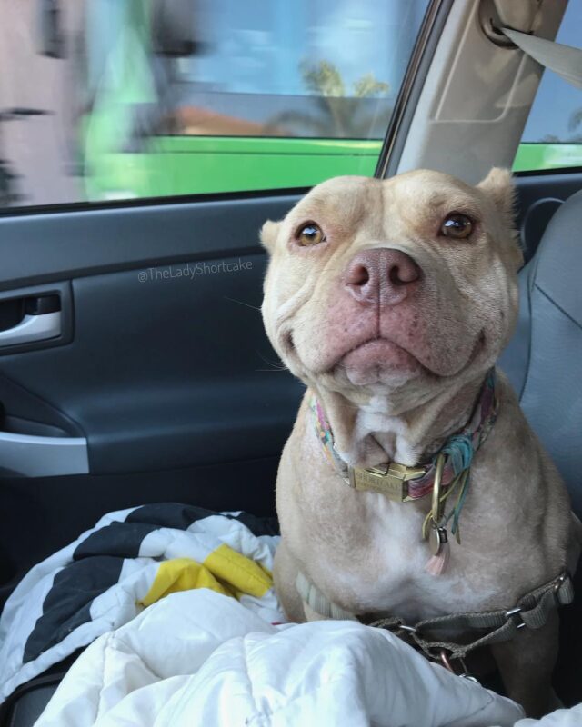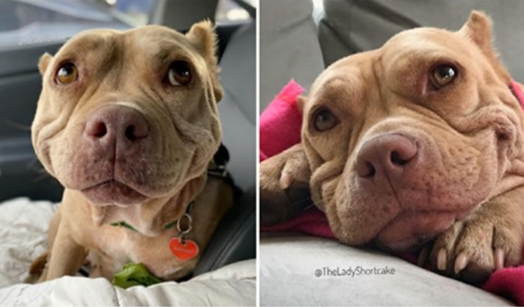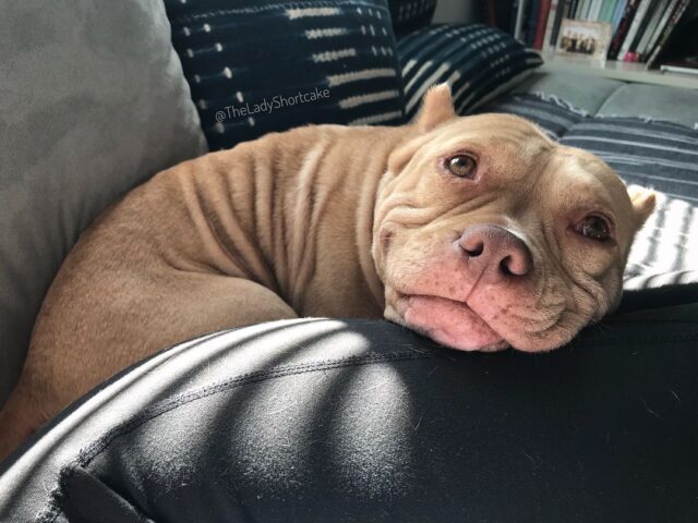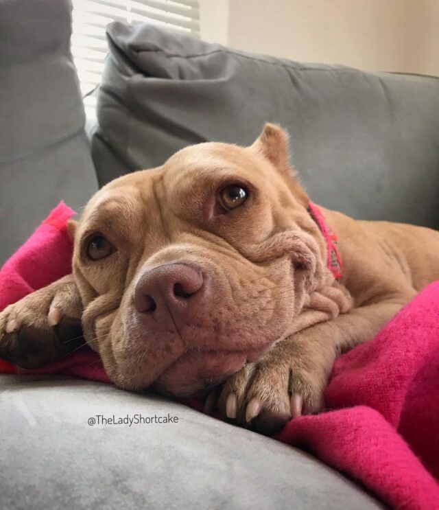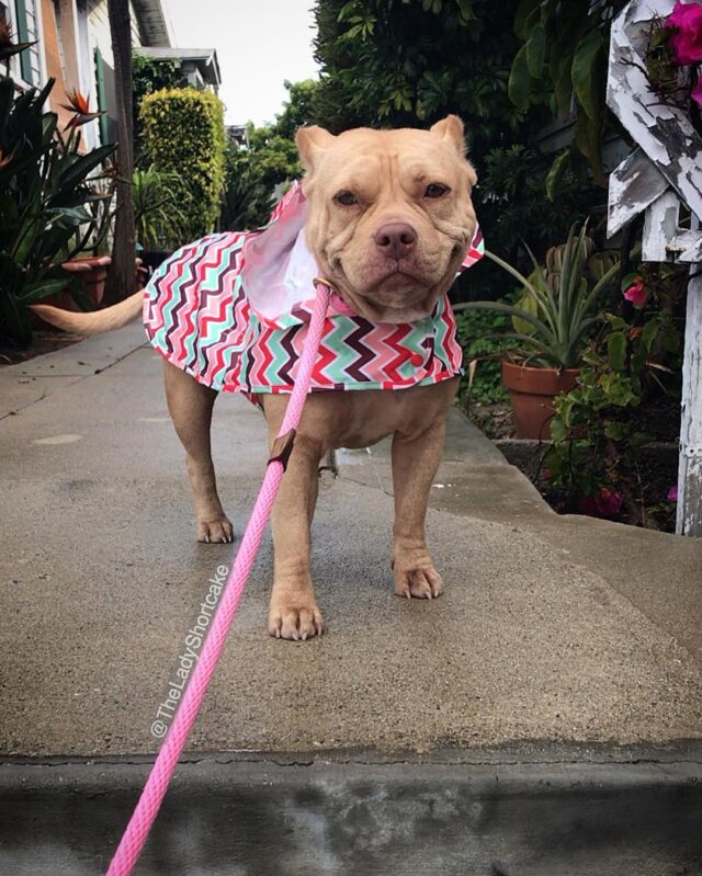 “Shortcake was found on the streets suffering from severe mange and a hernia,” Amy told Daily Mail. “Her time was up at the shelter when Fresno Bully Rescue became aware of her.”
