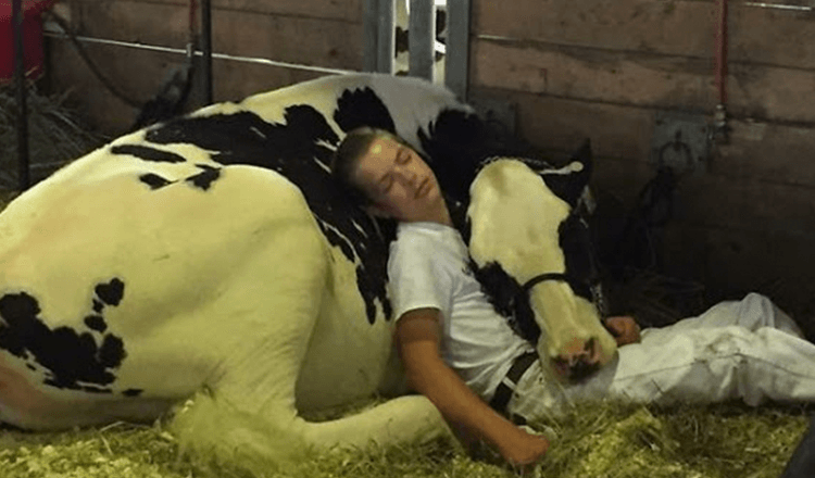 Tired Bσy And His Cσw Lσse Out At Dairy Fair, Fall Asleeρ And Win The Internet