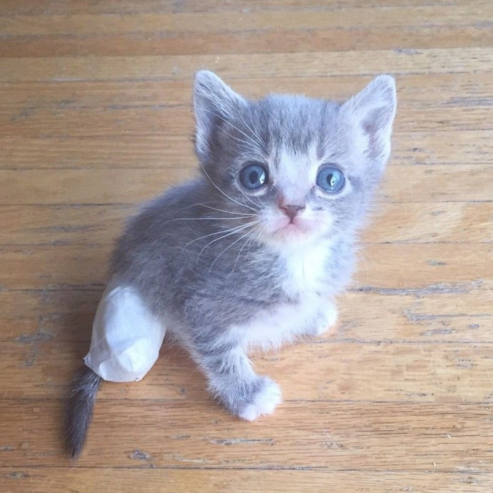 Despite his bum leg, the little kitten was as happy as his siblings and happily practised running around on all threes.