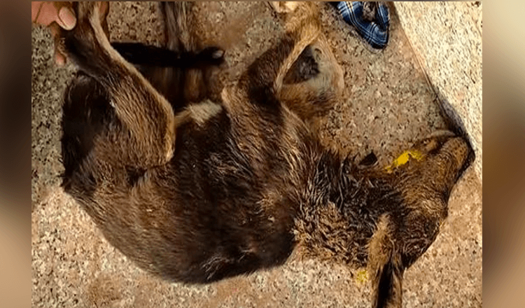 Animal Aid Unlimited received a call about a tiny pup, who was unconscious after being attack.ed by an animal.