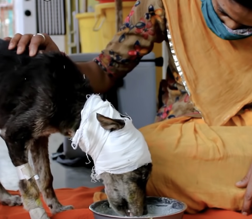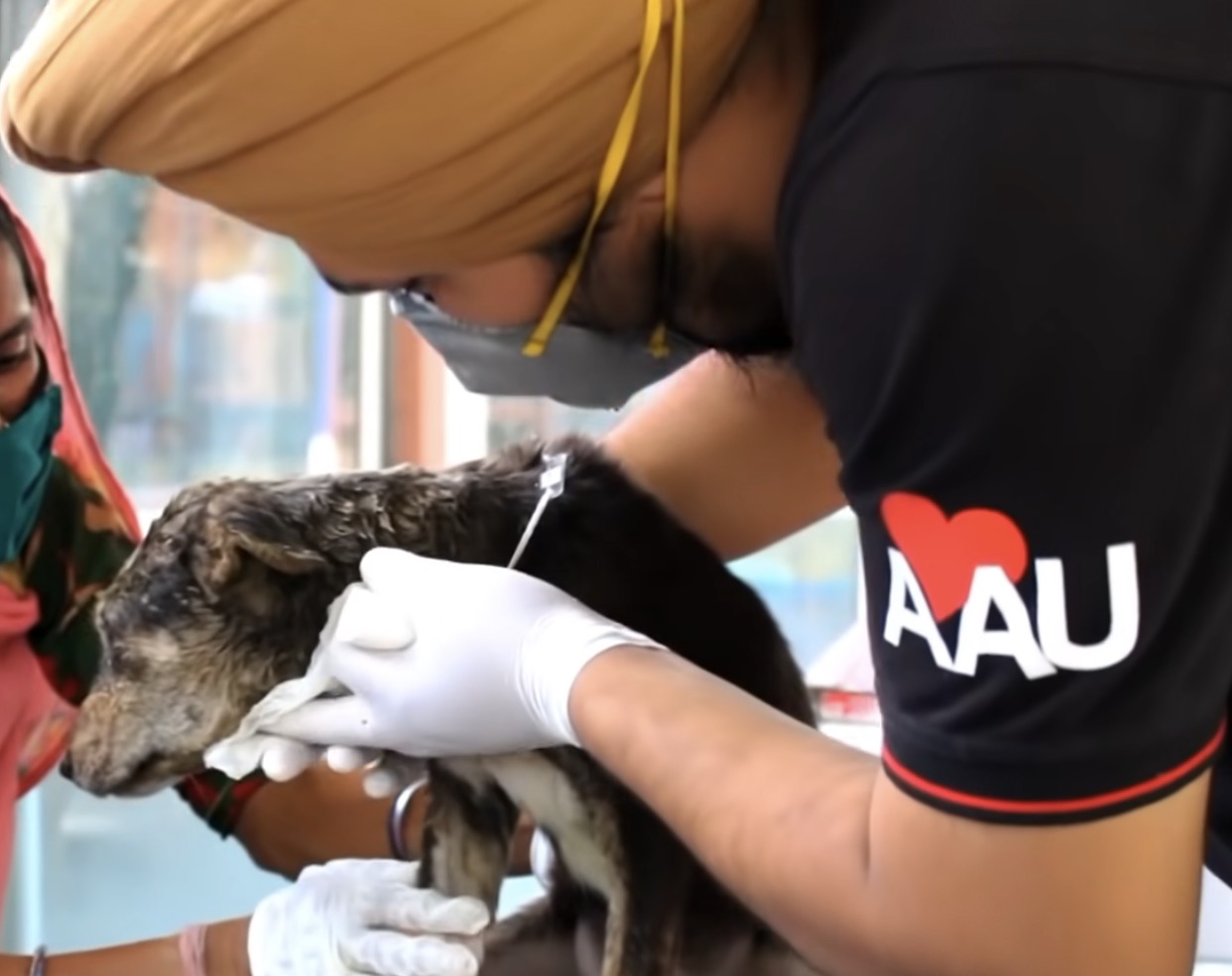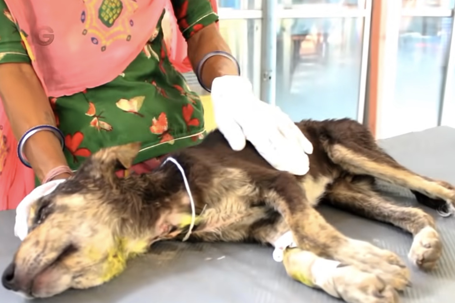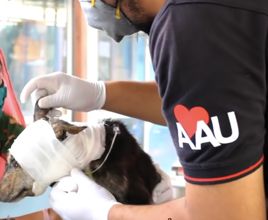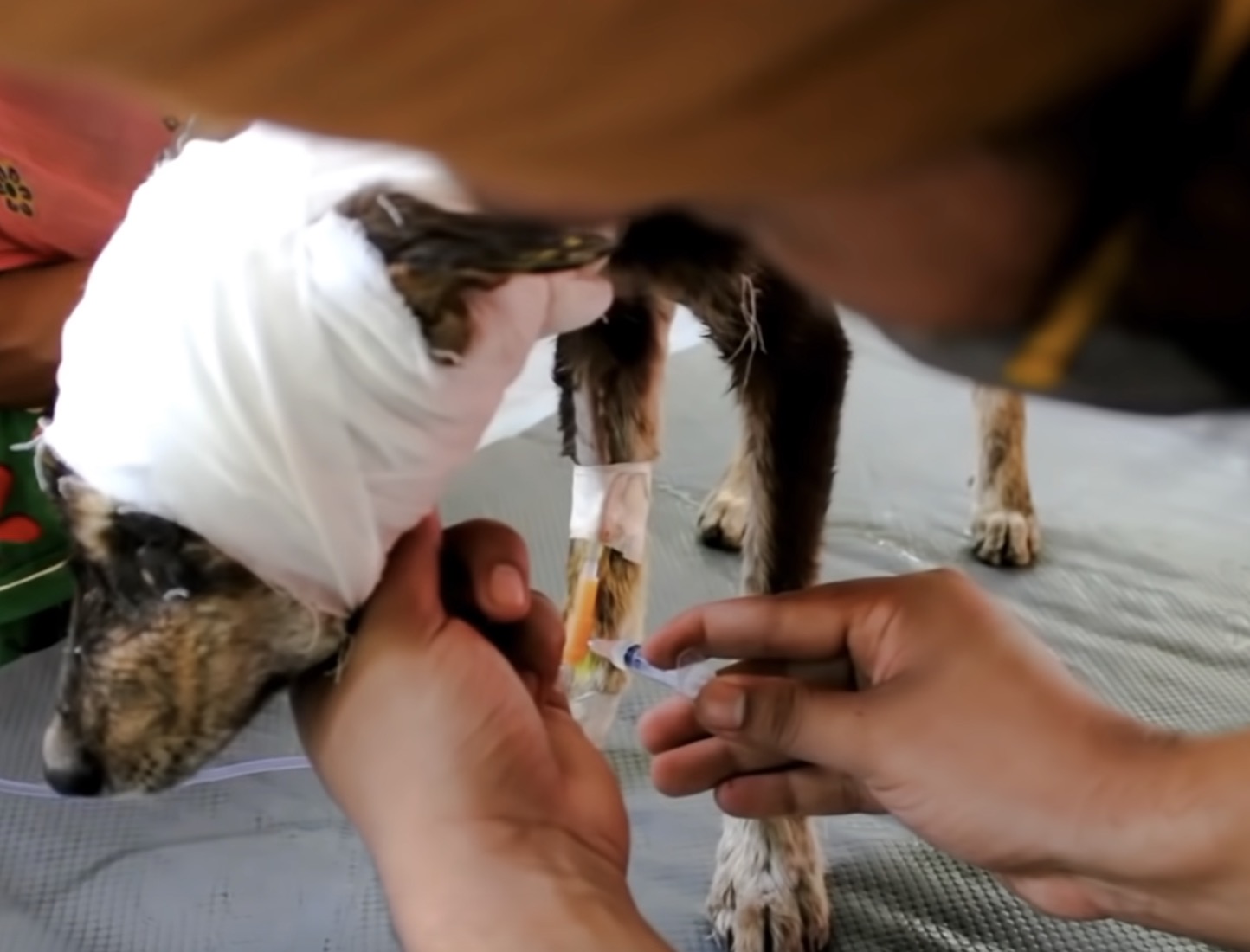This poor pup was on the verge of death! So, the rescuers took him directly to treat him by cleaning and bandaging the wound, and administrating antibiotics, anti-inflammatory medicine, and a saline drip.