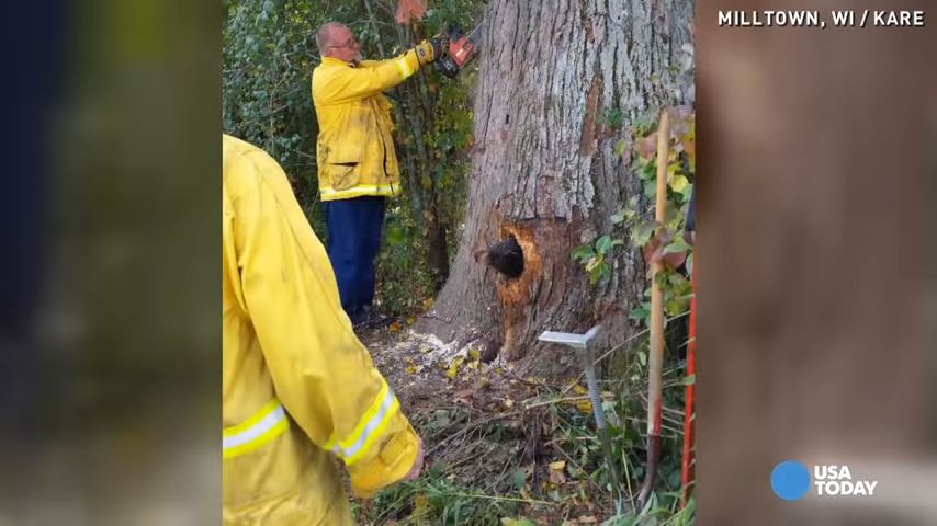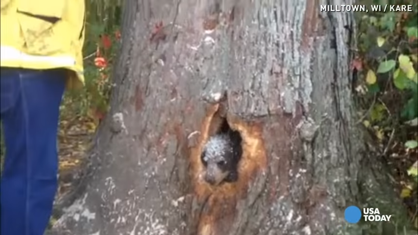 A Wisconsin resident was puzzled by a mysterious cry coming from the forest. She investigated and found two poor cubs on a tree.