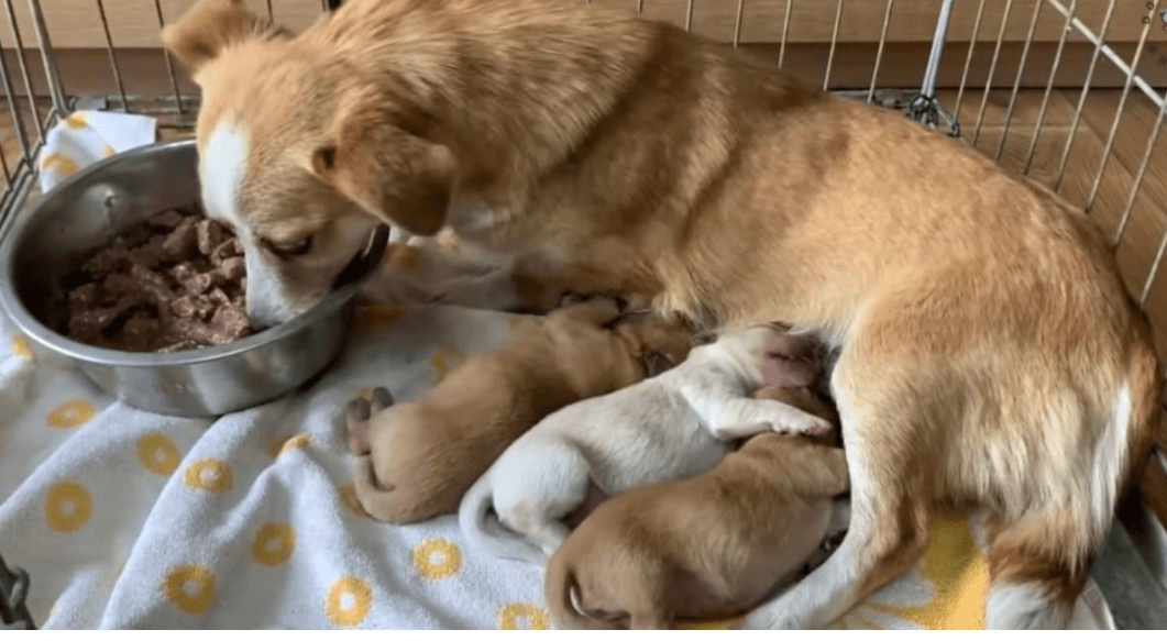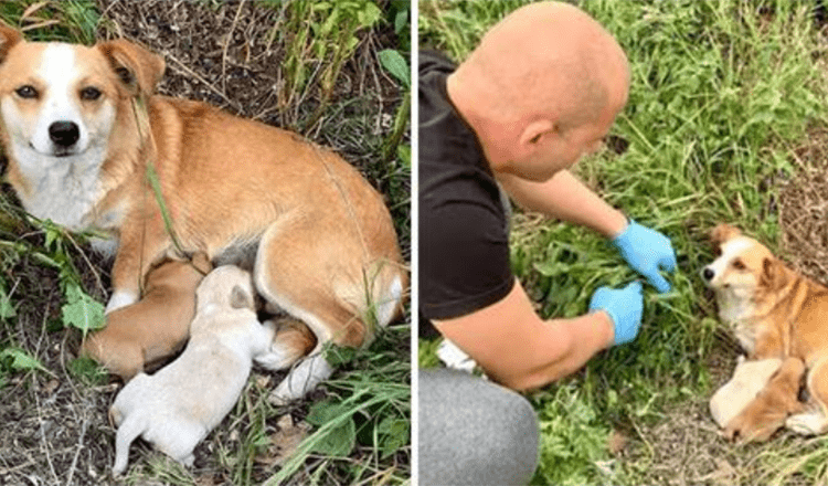 After feeding the mom, the rescuers continued to search around and found a total of three puppies whose eyes weren’t even open yet. Before leaving, the team didn’t forget to dig around one more time to make sure that no more dog would be left there.