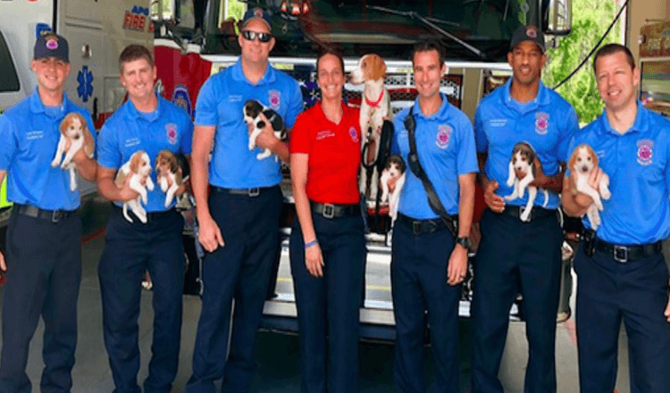 When a pregnant stray dog was ready to give birth, she seemed to know that the big-hearted folks at the Apopka Fire Department in Florida would be happy to help her!