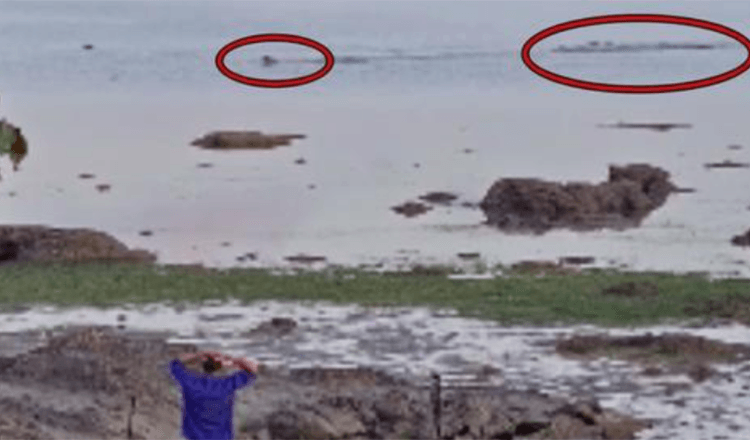 Enormous Crocodile Chases Dog Swimming In Ocean As Owner Desperately Calls To It