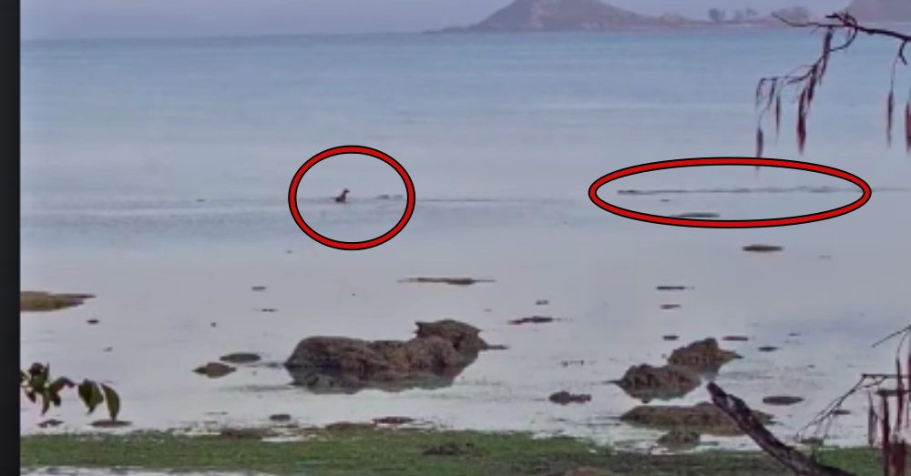 Enormous Crocodile Chases Dog Swimming In Ocean As Owner Desperately Calls To It