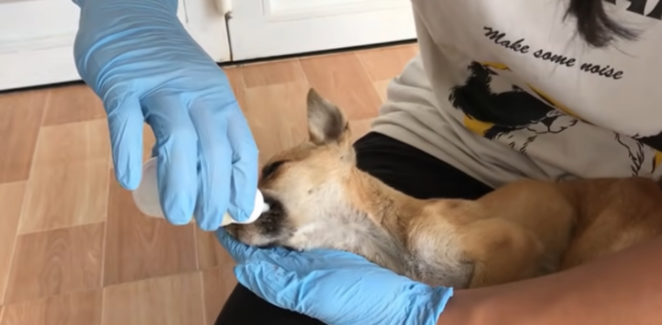 After getting her out of the bag, she started to shake and seemed she were about to die. The good news is, the rescuers didn’t quit on her like her previous proprietors did.
