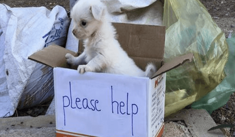 No one cares. We discovered a little puppy in a box on a roadside. The young puppy was so charming looks like a lamb.