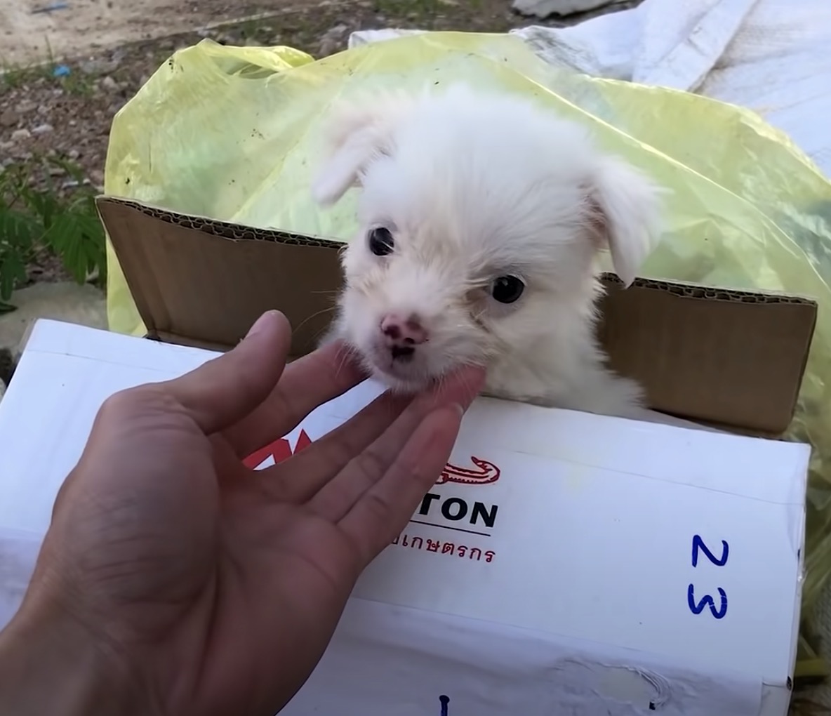No one cares. We discovered a little puppy in a box on a roadside. The young puppy was so charming looks like a lamb.