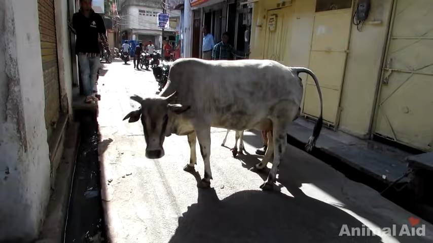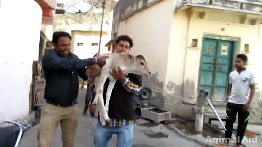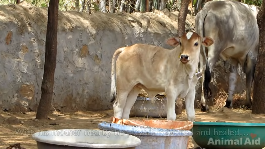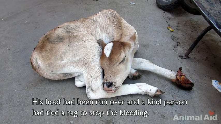 The baby cow in the video, named Bambi by his rescuers, was found immobile on the side of the road. His hoof had been crushed by a vehicle, but thankfully a good Samaritan wrapped his injured leg up to stop the bleeding and then called the right people — Animal Aid Unlimited.